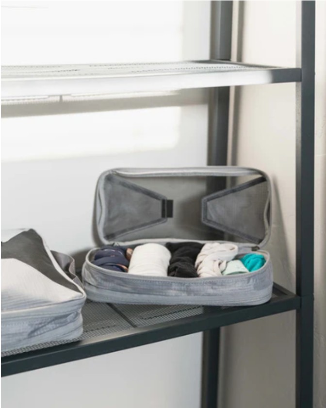 Packing cubes are game-changers: they compress clothes, keep things organized, and make repacking easy. Use compressible shoe bags to keep dirty or bulky shoes separate from clothes.